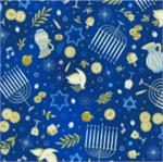 Symbols of Hanukkah on Navy Blue, A 9" or 1/4 yard Piece